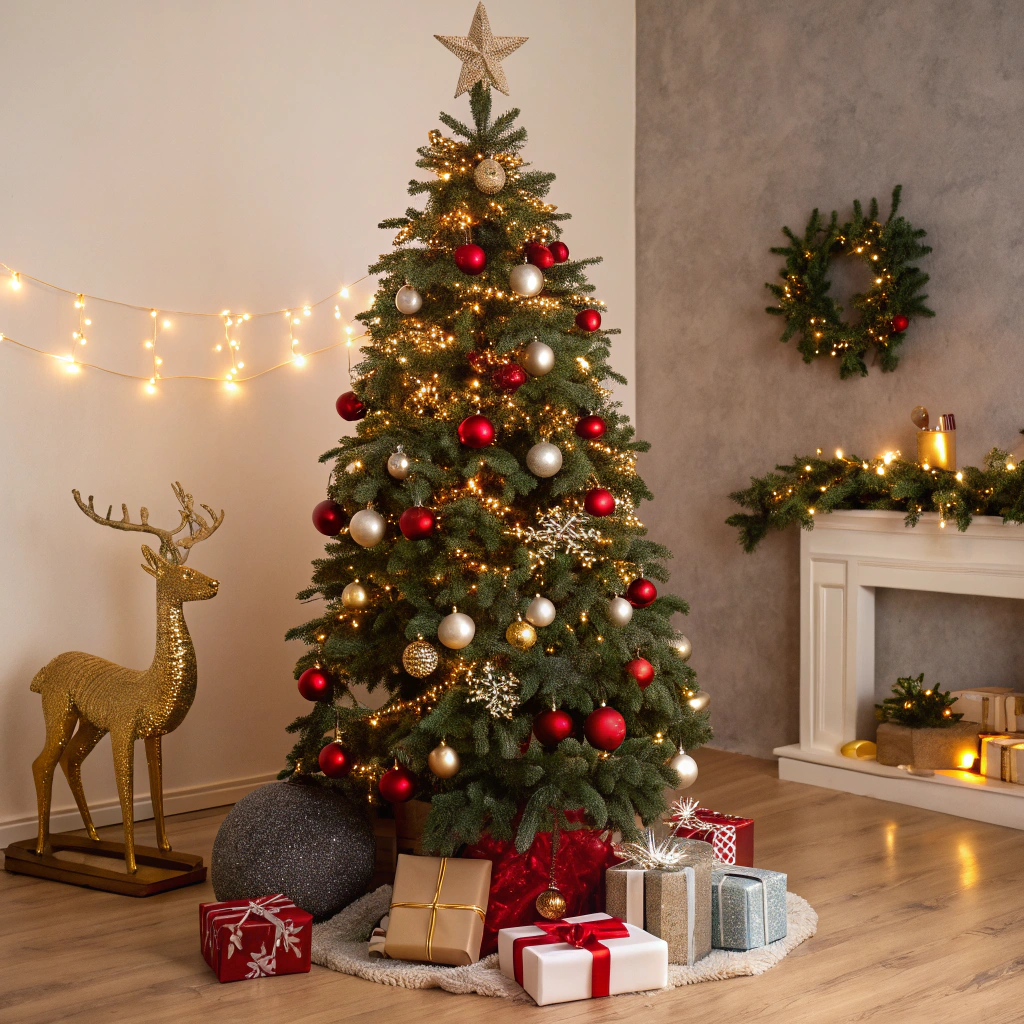 Set de Decoración Navideña Dorado - Bolas, Regalos, Piñas